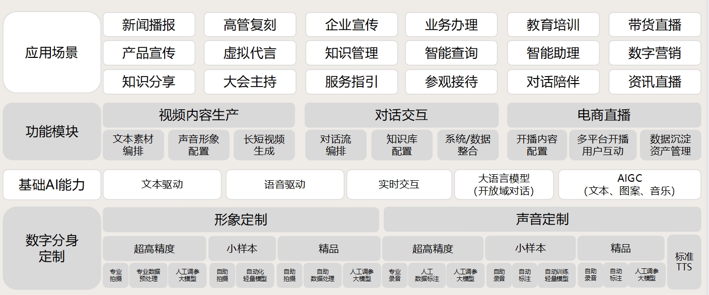 數字人在直播帶貨、AI視頻、智慧文旅、數字員工等方面都有著重要的作用。